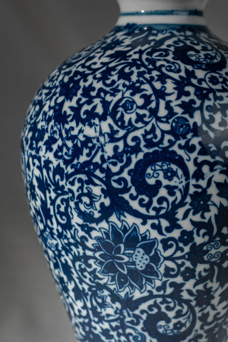 As night falls, the patterns awaken — deep navy swirls dance over white porcelain in the Midnight Scrolls Collection. Each design flows like ink in moonlight, mysterious and poetic, adding depth and calm to any setting.
