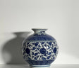 Hand-painted floral design in royal indigo on glossy white porcelain